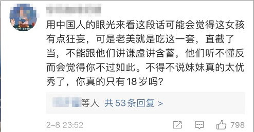 而提出上述问题的英国《卫报》2月8日发文“中国拥抱双文化之星,谷爱凌夺得奥运金牌”,提及谷爱凌当天记者会的回应时,写道“直率得令人印象深刻” 。