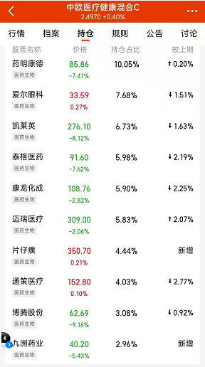 CRO板块的整体走弱,无疑让人联系起公募基金“新一姐”葛兰,毕竟其一直对CRO板块偏爱有加,这从葛兰在管规模最大的中欧医疗健康混合基金的前十大持仓便可看出。