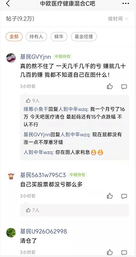 可在葛兰管理规模最大的中欧医疗健康混合基金吧里,很多基民表示熬不住了,还有很多基民表示已经清仓。