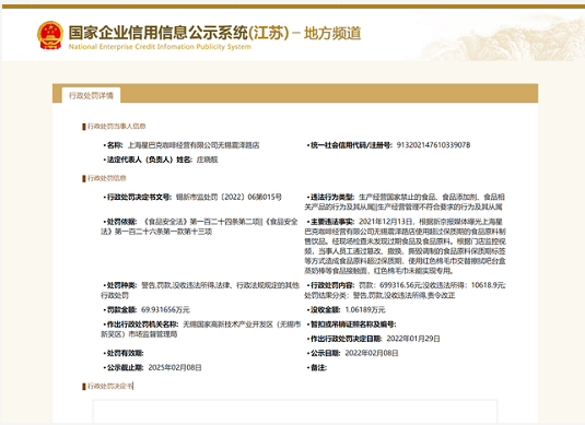 据中国消费者报微信公众号消息,近日,上海星巴克咖啡经营有限公司无锡震泽路店、无锡昌兴大厦店因通过篡改、撤换、撕毁调制的食品原料保质期标签等方式,使用过期食品原料、经营过期食品;擦拭食品接触面的毛巾未能实现专用等行为,被无锡市新吴区市场监督管理局没收违法所得并分别罚款69万余元、67万余元。