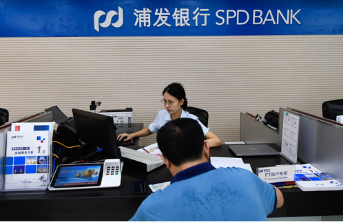 图为在浦发银行海口分行,一名银行工作人员在为客户办理业务。新华社记者 杨冠宇 摄