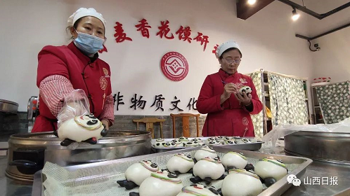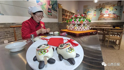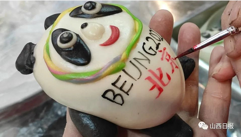 看完“面墩墩”的制作,几位游客意犹未尽,想在花馍研习社里继续寻找雪容融的身影。“这几天前来参观和学习制作‘面墩墩’的游客络绎不绝,我都没有时间继续研究雪容融的制作。元宵节即将来临,我争取早日做好面质雪容融,将非遗面塑的技术与冬奥会的魅力相结合,带给大家全新的体验。”续爱花说着,一边又拿起热腾腾的“面墩墩”,用小号的毛笔在“面墩墩”的圆“肚皮”上写着“BEIJING北京”,以最传统的庆祝形式,赋予山西面食对北京冬奥会最美好的祝愿。
