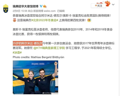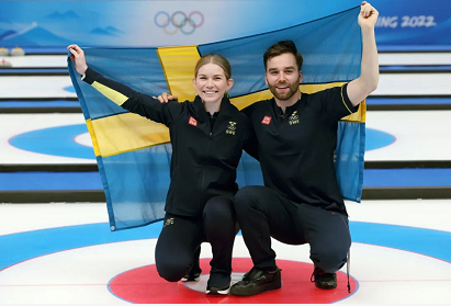 2022北京冬奥会冰壶混双铜牌赛:瑞典9-3英国。