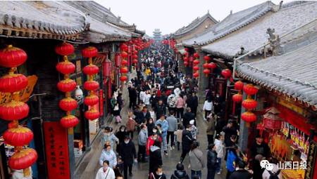 “从迎薰门而入,平遥古城内熙来攘往、一片热闹景象。今年除夕到正月十六,2022‘我们的节日·春节——平遥中国年’活动在平遥古城举办,平遥中国年目前已成功连续举办了14届,是我国北方最具汉民族特色的春节民俗文化品牌。”平遥县委宣传部常务副部长赵东胜介绍。
