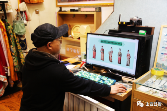 像赵今这样的年轻人,在平遥还有很多。同为平遥人的肖旭是一家汉服旅拍店的创始人,多年来一直致力于平遥文化与汉服文化的结合。“平遥怎样和汉服来结合?我发现在平遥有一套珍贵的文物,就是平遥双林寺的供养人,这些服装就很真实地体现了明代平遥人的衣冠礼仪,我就参照这些文物的形象做了一系列平遥明代百姓的复原服装。”肖旭介绍,目前店内大概有300件左右汉服,其中原创汉服占到了4成。