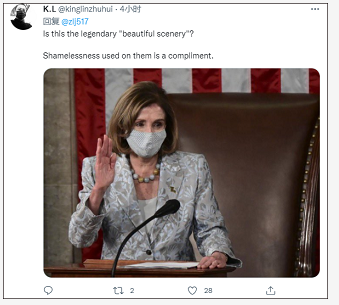 说到“双标”,有网友想到了另外一位“典型”——美国众议院议长佩洛西。