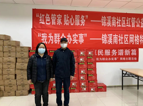 副会长刘新波家里四个家属在一线做志愿者服务,看到一线抗疫志愿者的辛苦,他再次向社区一线抗疫人员送去苹果等物资。