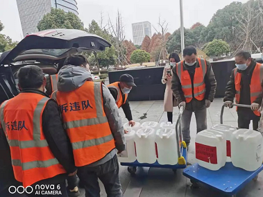 理事王涛公司每次疫情都是积极行动,这次向园区街道送去慰问品和抗疫物资消毒液。