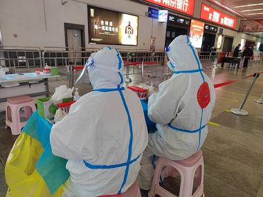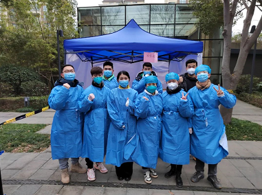 理事马桦,会员武雄、史林鹏不惧寒风和疫情险况,积极参加社区核酸检测工作,维护现场秩序,协助采样医护人员进行检查健康码、发放检测采样凭证等工作。