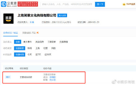 据企查查,近日,上海笑果文化传媒有限公司发生工商变更,李瑞超(李诞)退出董事职务。笑果文化是一家喜剧脱口秀内容提供商,公司成立于2014年,法定代表人为叶烽,注册资本208.13万元人民币。李诞目前仍为该公司股东,持股4.5774%。