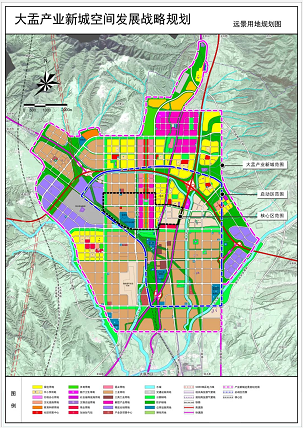 大盂产业新城规划范围南起马坡村、棘针沟及东南窊村,东至三畛村和古城村,北至石岭关、西至北白村及南白村,远景规划总用地76平方公里。其中划定启动区范围总用地28.4平方公里,核心区范围总用地4平方公里。规划期限2022年至2035年,远景2035年后。
