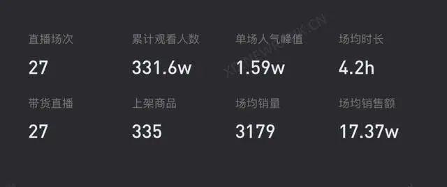 两个月内,东方甄选直播场次27场,并不算高。直播累计观看人次331.6万,单场人气峰值1.59万,场均销售额17.37万元。粉丝数量上,自开播以来,东方甄选粉丝总数为21.17万,粉丝增量15.43万。