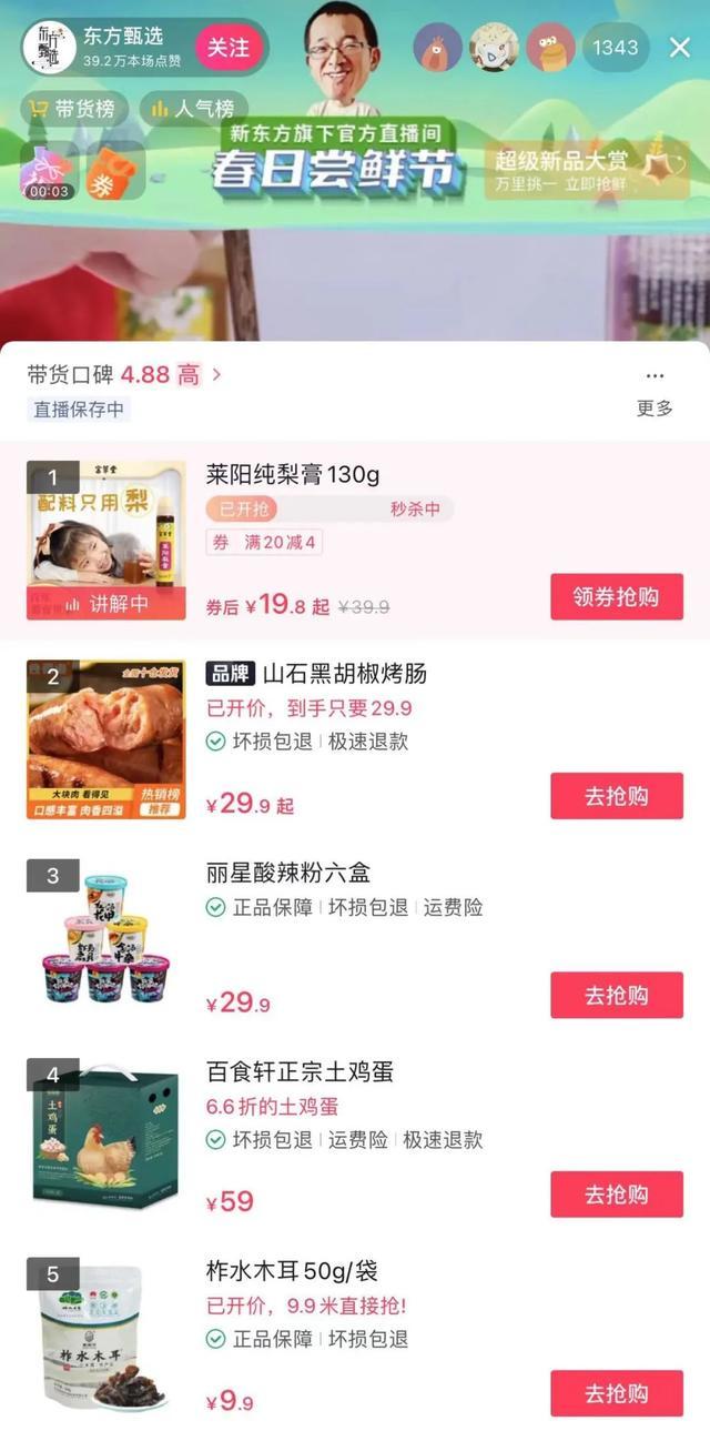 销售额虽然不高,但俞敏洪直播间的单品售价并不低。例如2斤1盒的丹东99草莓,就卖到了168元。俞敏洪说,自己销售的农产品价格并不是全网最低,但在同类品牌当中,肯定是最便宜的,他希望用同等价格给消费者选出最好的农产品。
