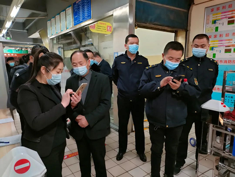 2月24日,由市商务局、市场监管局、 城市管理局、公安局等部门组成的联合检查组对全市商场、超市、宾馆等人员密集场所疫情防控工作进行检查。