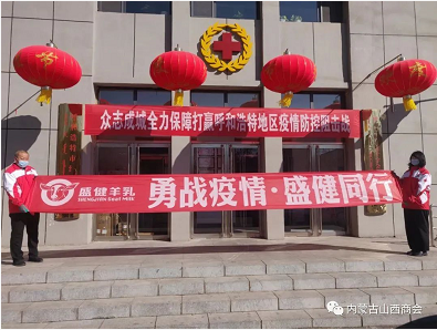 2022年2月22日,为了给奋战在呼和浩特市全体抗疫一线医护人员、相关工作人员以及接受隔离的社区群众提供营养支持,内蒙古山西商会常务副会长吕菊生企业——盛健羊乳集团调集近10万余元羊乳营养制品装车,经由和呼和浩特市红十字会统一发运至呼和浩特市疫情防控一线。