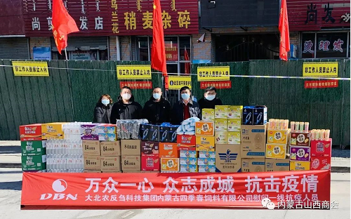 内蒙古四季春饲料有限公司向奋战在疫情防控一线工作人员送去方便面、火腿肠、奶茶等多种副食,电暖器、电热水壶、电暖宝等慰问品,并为他们送去消毒液、口罩、加厚手套等保障物资和保暖用品。对坚守奋战在疫情防控一线的工作人员表达崇高敬意!