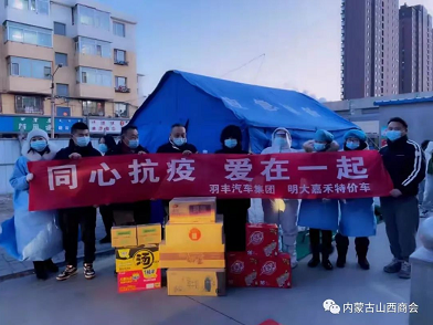 近期,商会会员张羽企业——内蒙古羽丰汽车集团,向呼和浩特市阿拉善北路社区、光明大街环河社区捐赠了方便面、奶茶、牛奶能防疫物资,折合人民币贰万元。羽丰汽车集团以实际行动支持防疫工作,为呼和浩特打赢疫情防控阻击战作出了应有的贡献。