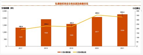 2021年国内私募股权投资十分火爆,私募股权交易金额也首次超过中国并购交易总额的一半。
