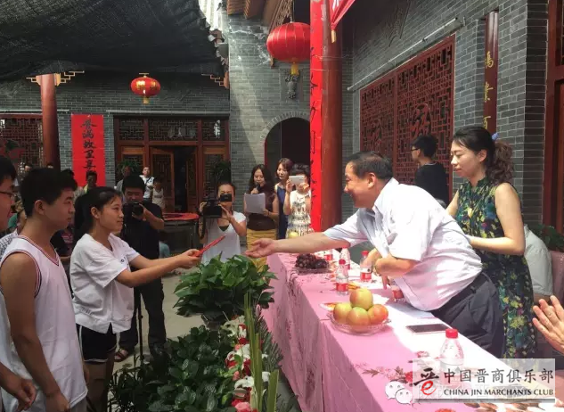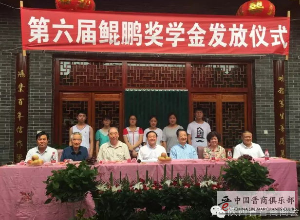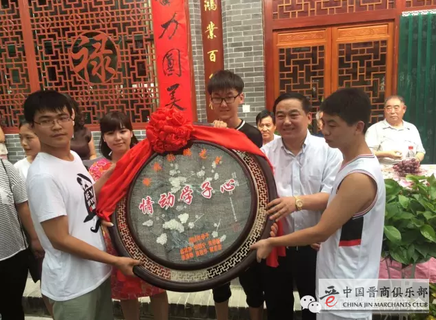 8月20日,陕西省晋商商会监事长张鹏为家乡山西省临猗县角杯村考上大学的六位大学生颁发了奖学金,共计5万元。虽黄河相隔,道路相阻,但商会40余位会员和张鹏的高中班主任、同学及政府领导仍共聚角杯村,见证“第六届鲲鹏奖学金”的发放仪式。