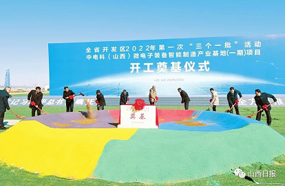 山西省委书记林武,省委副书记、省长蓝佛安等领导共同为中国电科(山西)微电子装备智能制造产业基地(一期)项目培土奠基。山西日报记者 史晓波摄