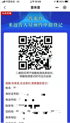 “晋来登”,是晋城市创新推出的“来返晋人员预约申报”小程序登记系统。今年1月中旬,该市利用大数据技术开发出了这一系统,并在全市各入境卡口、交通场站推广使用。