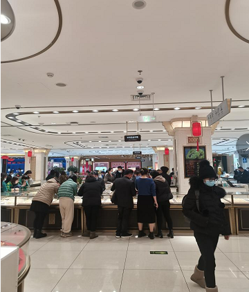 周大福专卖店工作人员称:“现在黄金首饰的回收价格是每克360元,金条的回收价格要高一些,每克是380元。受俄乌冲突影响,近期黄金价格出现上涨,回收价格也比2021年有一定上涨。”