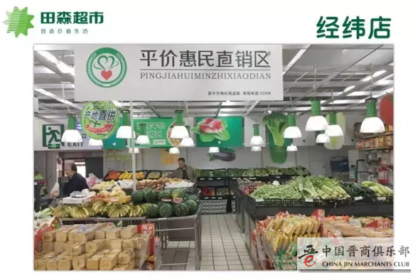 山西田森超市现拥有三个大卖场,六个标超,总营业面积60000平方米,1个占地面积10000平方米农副产品加工基地和1个物流配送基地,同时还有102家便利店;