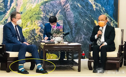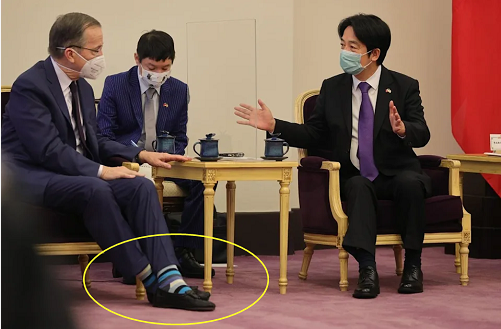 据台湾媒体《联合报》3日报道,有台“资深外事官员”发现,此次来台的美国前参联会主席迈克尔·马伦与蔡英文等人见面时,脚上却穿着一双花袜子,这种不符合服装礼仪的行为让在场人员“看傻眼”。