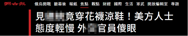 据《联合报》报道,有台“资深外事官员”发现,美方代表团成员见蔡英文时经常“不遵守服装礼仪”,这次美国前参联会主席迈克尔·马伦穿着花色袜子与蔡英文见面,态度轻慢,鞋子也不够正式,让人觉得不可思议。
