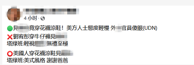 报道中称台官员对美方失礼穿着不敢言语,有人想起此前鸿海创办人郭台铭携亲近幕僚刘宥彤就BNT疫苗一事与蔡英文见面,刘宥彤因穿牛仔裤出席而遭亲绿媒体及人士怒轰“仗势凌人”“不自重”,逼得她向蔡英文公开道歉,自我检讨。