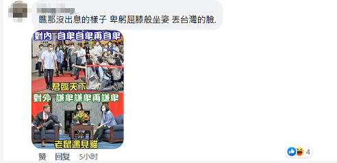 两相对比之下,民进党对外唯唯诺诺,对内重拳出击,让不少岛内网民斥责其在美方代表面前卑躬屈膝的“奴才样”丢尽了台湾的脸。