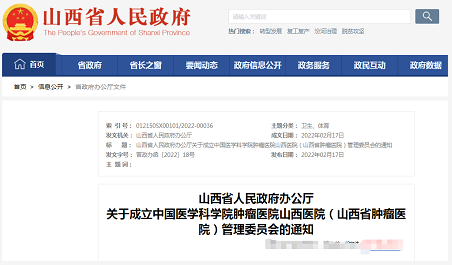 山西决定成立“中国医学科学院肿瘤医院山西医院(山西省肿瘤医院)管理委员会”,有关事项通知如下。