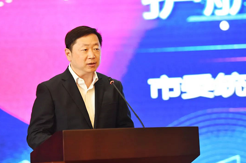苏州市委统战部副部长、市工商联党组书记王益冰代表工商联进行主题发言。
