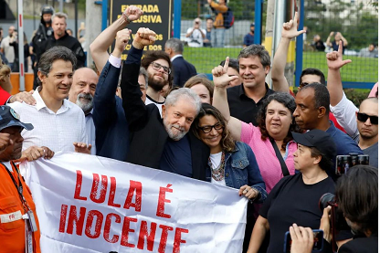 2019年11月8月,巴西前总统卢拉出狱。图自央视