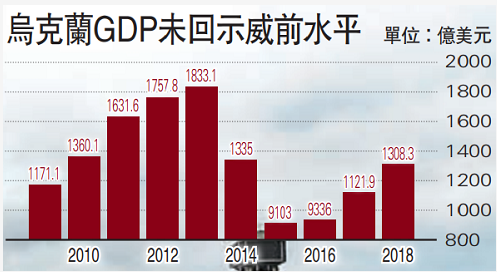 2013年,乌克兰爆发“颜色革命”,社会撕裂,经济恶化衰退,东部地区陷入流血冲突,人均GDP在2018年沦为全欧洲最穷国。图自大公网