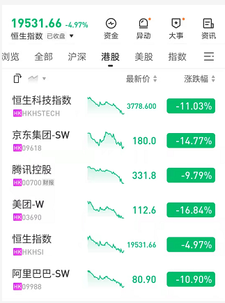 恒生科技指数重挫11%创纪录,港股互联网集体暴跌。