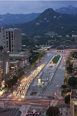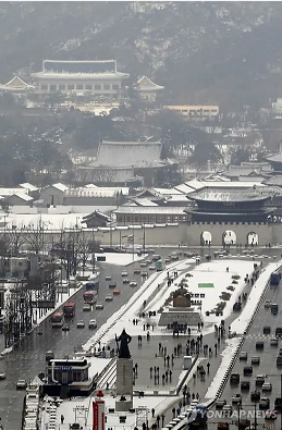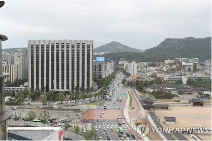光化门广场以及旁边的首尔中央政府大楼和远处的青瓦台 图片来源:韩联社