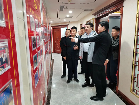 在郭启文会长的陪同下,幸福人寿保险股份有限公司河南分公司党委书记、总经理王晓东一行首先参观了党建文化长廊、党员活动室,听取了有关人员的工作介绍。