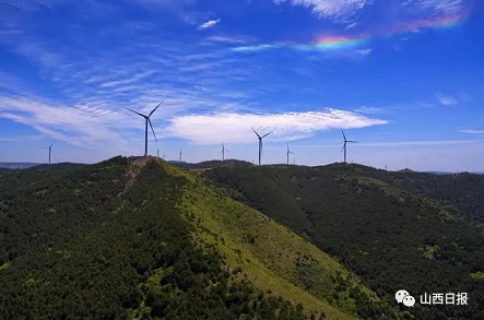 2018年5月23日拍摄的壶关县常家池村附近山上的风力发电机。新华社记者曹阳 摄