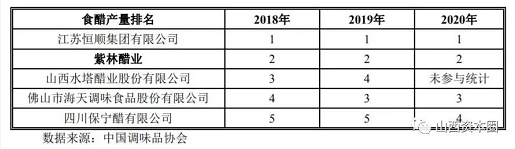 根据中国调味品协会披露的数据显示,近年来,镇江香醋代表企业——恒顺醋业国内醋业龙头优势日益稳固,国内调味品龙头海天味业追赶之亦很迅猛,与此前长时间位居产量第二、三名的紫林醋业、水塔醋业差距越来越小,并于2019年将水塔醋业挤至第四位(2020年未参与统计),另据营收测算,2020年紫林醋业市场占有率亦不过恒顺醋业的一半左右,而恒顺醋业、海天味业均为A股上市公司,另一家总部位于四川的调味品上市公司千禾味业近年来追赶势头同样迅猛。