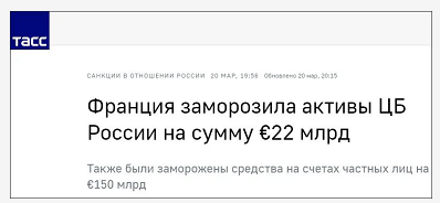 据塔斯社3月20日消息,法国经济与财政部长勒梅尔当天宣布,冻结俄罗斯中央银行220亿欧元资金,并冻结受制裁的个人账户和房地产。