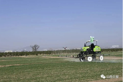农田里,一台台自走式植保车“翅膀”打开后,均匀地喷洒着杀菌剂和水溶肥料;一架架植保无人机“嗡嗡”鸣响,在麦田上空来回穿梭,喷洒着农药……这几天,位于山西南部的临汾市翼城县开启了全县小麦促弱转壮集中喷肥行动。