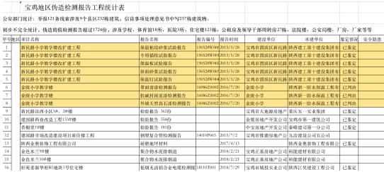据张女士不完全统计,仅她发现的假报告就多达一千多份,涉及学校、体育馆18所,医院3所,居民住宅楼123栋,公租房等27栋。