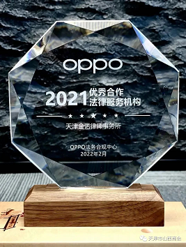2022年2月,经OPPO公司法务合规中心评定,天津市山西商会(中国晋商俱乐部联合发起机构)会员企业天津金诺律师事务所荣幸成为OPPO“2021优秀合作法律服务机构”。