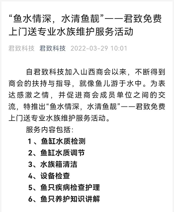 “鱼水情深,水清鱼靓”——君致免费上门送专业水族维护服务活动