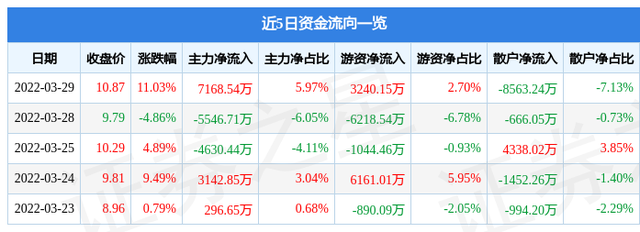资金流向数据方面,当日主力资金净流入7168.54万元,游资资金净流入3240.15万元,散户资金净流出8563.24万元。近5日资金流向一览见下表: