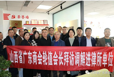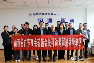 结合商会轮值制度及广调委工作要求,本着“沟通交流,共谋发展”的精神,2022年3月28日下午,由轮值会长谢伟群、广调委副主任苏丽平带队,参观拜访了山西德为律师事务所、山西开杰律师事务所、山西轩明律师事务所。我会常务副会长李楚忠,副会长赵凯,秘书长马飞跃,轮值副会长张明流,轮值会员陈志荣,广调委专家委员田丰,广调委调解进律所负责人韩飞,广调委调解进企业负责人徐德峰, 广调委涉外组负责人王梦娇,广调委讲师团负责人马少君,商会会员劳醒健、黄俊良及部分调解员参加了拜访。轮值会长谢伟群向每个律所赠送了慰问礼品,向调解员对调解工作的支持表示了感谢。