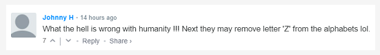 “人类到底怎么了!下一步他们可能要从字母表中删除‘Z’了哈哈哈。”