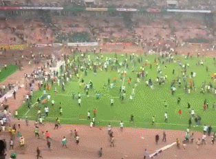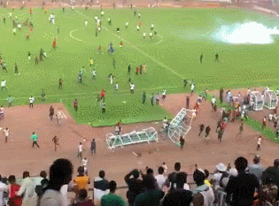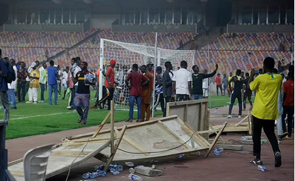 据《镜报》等媒体报道,尼日利亚的出局激怒了现场数万名球迷。终场哨声一响起,大批现场球迷观众翻过看台,冲进阿布贾国家体育场场内,追打群殴球员,大肆破坏球场设施泄愤,还与警察、球场安保人员发生激烈冲突。