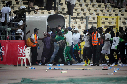 尼日利亚主场被加纳淘汰后,暴怒的球迷涌入球场,追打群殴球员,砸毁球场设施,加纳球员都顾不上庆祝仓皇而逃,场面一度十分混乱,警察最终不得不动用催泪瓦斯以控制现场情况。